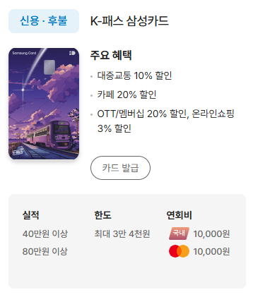 삼성카드 K패스는 심플한 혜택 구조가 장점입니다.