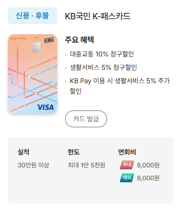 국민카드 K패스는 포인트 적립형 성향이 강합니다.